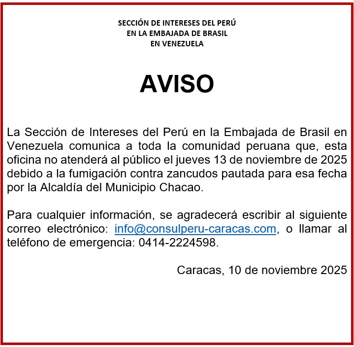 Para atención de peruanos en situación de emergencias: +58414-2224598