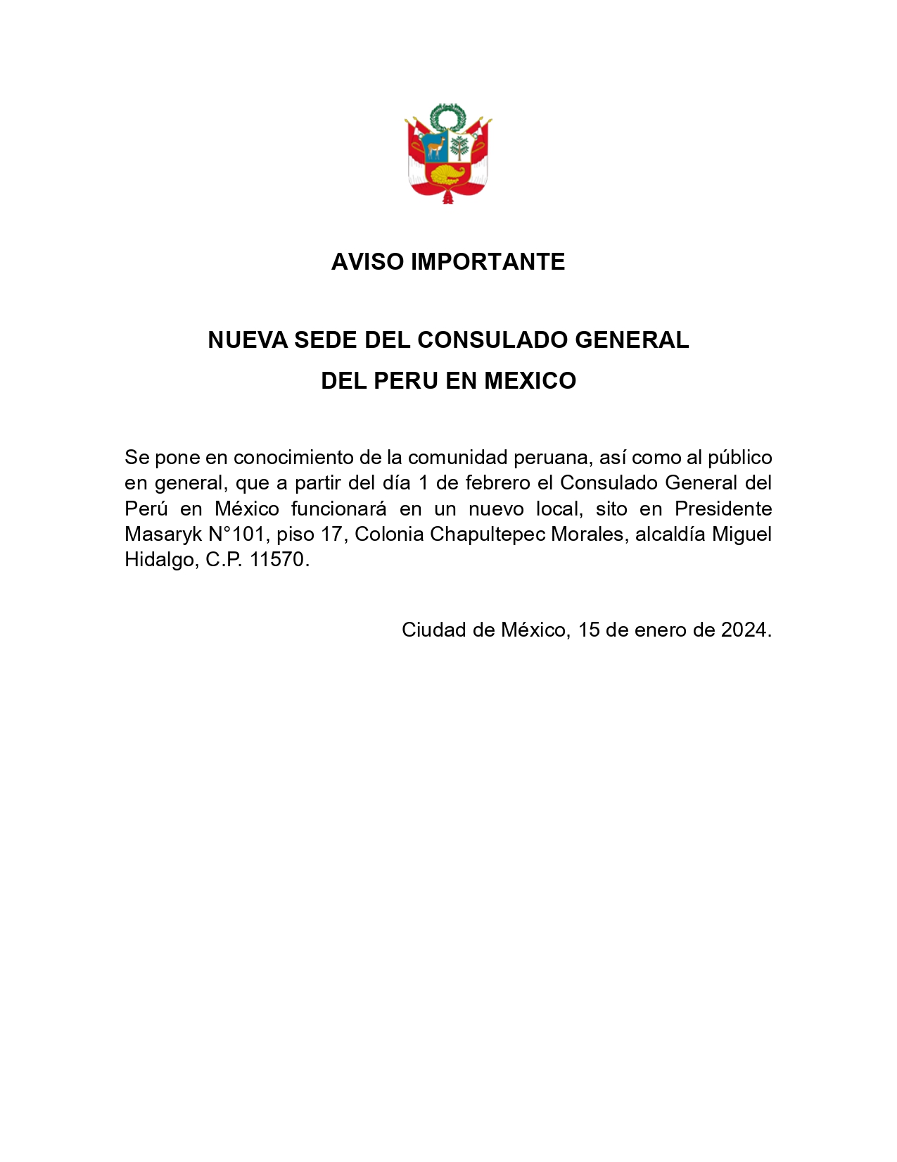 NUEVA SEDE DEL CONSULADO GENERAL DEL PERU EN MEXICO