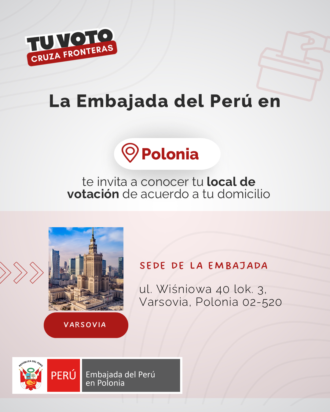 LOCAL DE VOTACIÓN VARSOVIA -ul. Wiśniowa 40 lok. 3, Varsovia, Polonia 02-520
