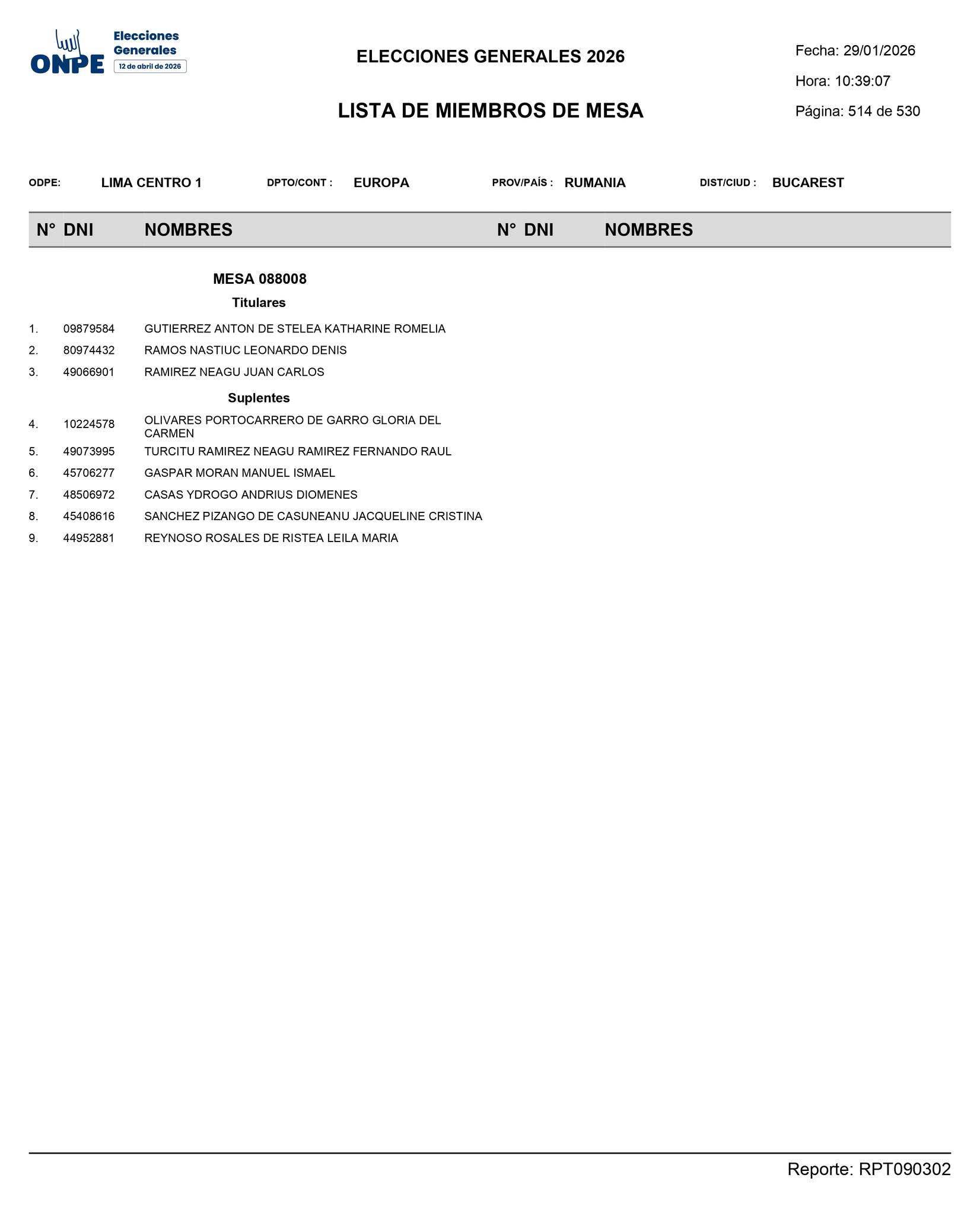 Los invitamos a revisar la imagen adjunta, la cual contiene la relación de los miembros de mesa para Bucarest para conocer si fueron seleccionados.
